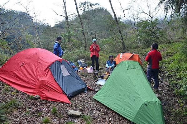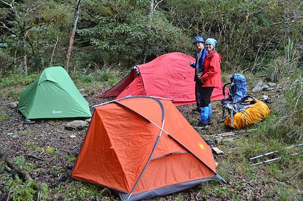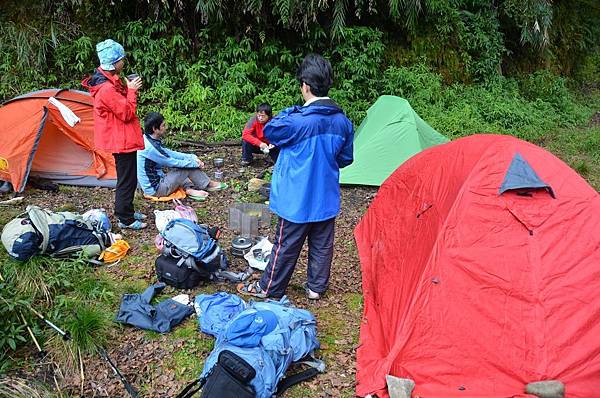 只好在帳蓬前的小塊有雨遮的地方煮食晚餐,