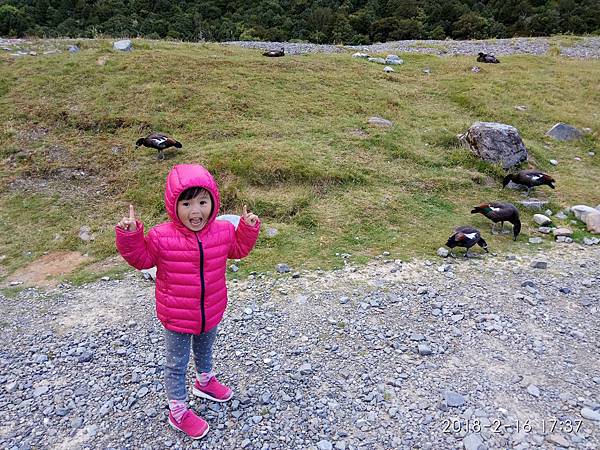 登山口旁停車場,看到幾隻雁鴨在覓食,芮就已經很興奮!