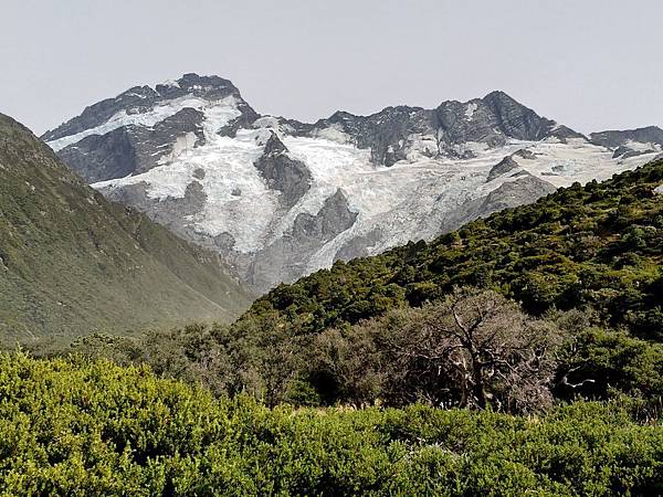 步道前方積雪山頭,Mountain Sefton 及冰河。