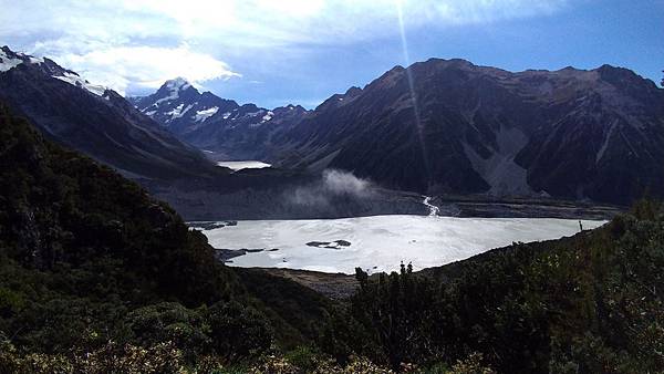 俯視後天要走的 Hooker Valley Track,庫克山腳下的 Hooker Lake。